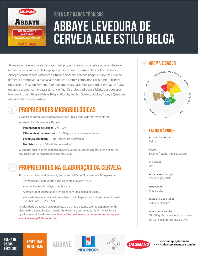 Abbaye é uma levedura ale de origem belga que foi selecionada pela sua capacidade defermentar cervejas de estilo belga que podem variar de baixo a alto contido de álcool.